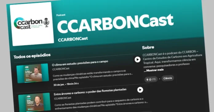 "subtitle": "Novo podcast do Centro de Estudos de Carbono em Agricultura Tropical (CCarbon) da USP em Piracicaba amplia o alcance de pesquisas essenciais para enfrentar desafios ambientais e climáticos, disponível no Spotify.",